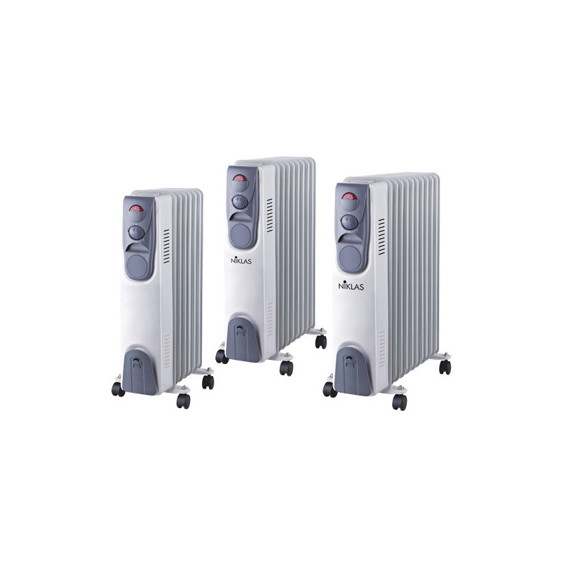 Radiatore a olio 9 elementi 2000 W – Niklas con termostato, ruote e 3 livelli – da interno