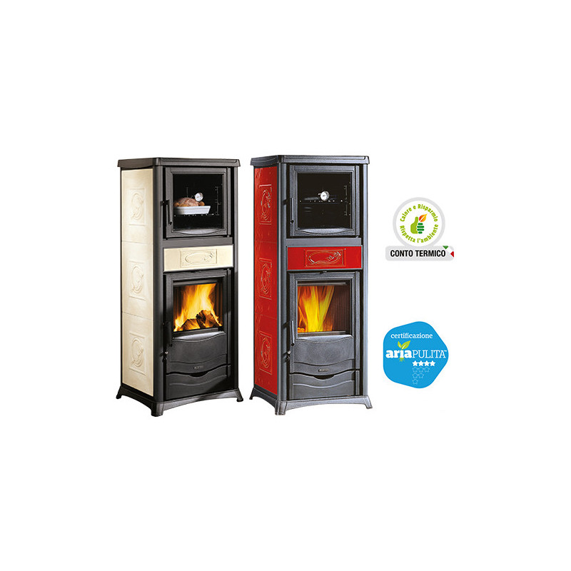 Stufa a legna Rossella Plus Forno EVO Liberty Bordeaux – 9,1 kW – La Nordica – Eleganza e funzionalità per ambienti ampi