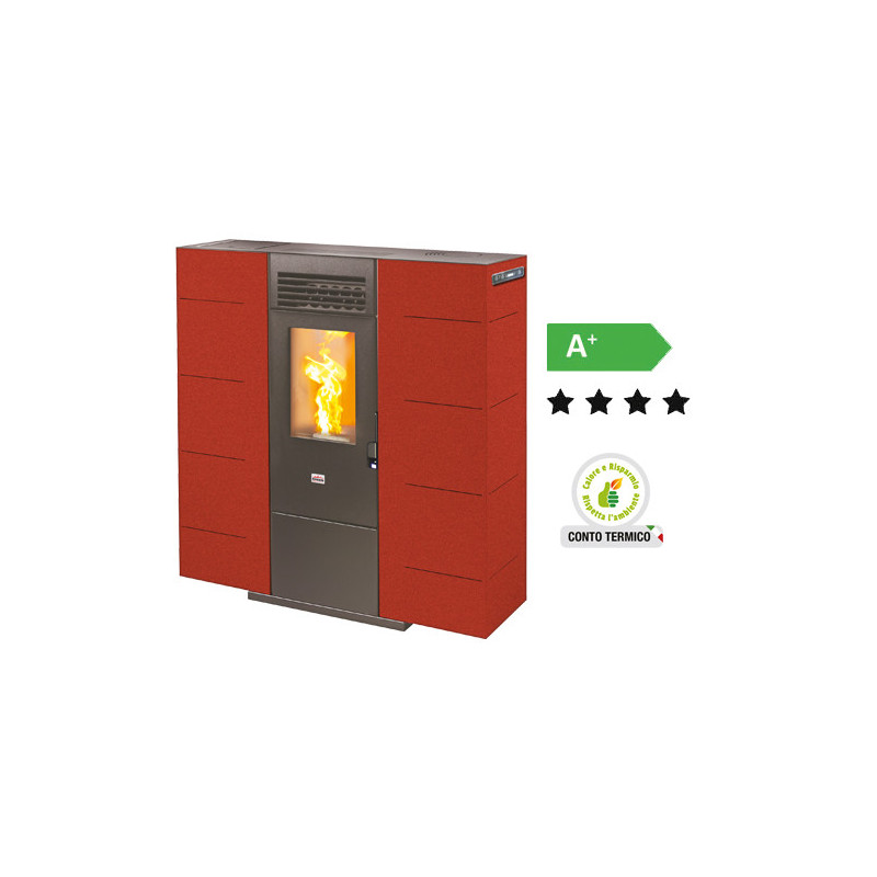 Stufa a pellet Queen Slim 6 Bordeaux – 6,14 kW – AMG – Riscaldamento compatto per ambienti fino a 160 m³