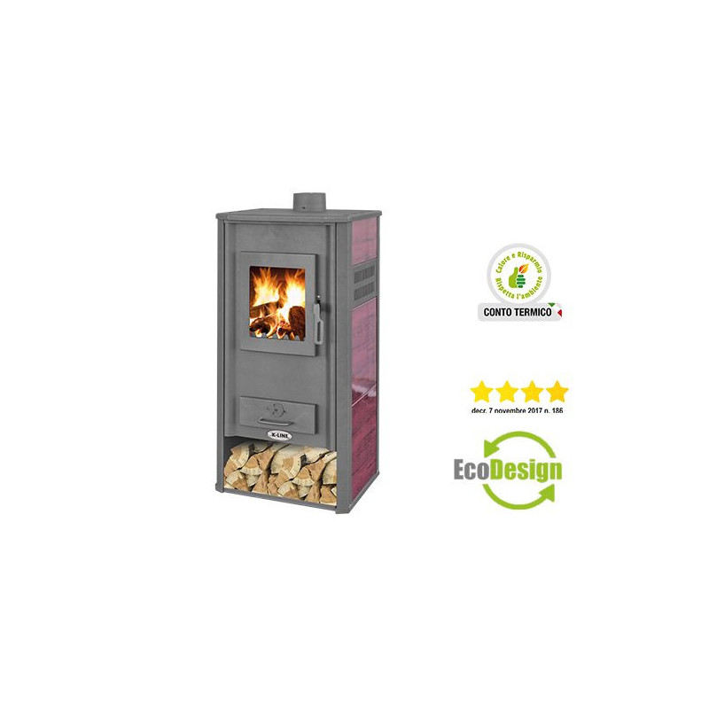 Termostufa a legna Kaos Idro Bordeaux – 21,4 kW – K-Line – Riscaldamento e acqua sanitaria per ambienti fino a 278 m³