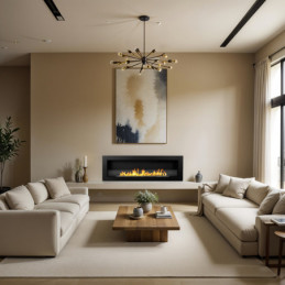 External dimensions: Width 122cm Depth 9.5cm Height 56cm Weight 19.8 kg Technical data: Power: 900/1800 W AC- 220-240/50hz Absorption in flame function (no heating): 30 watts Temperature: 18°-30° Daily and weekly programming Adjustable electronic timer from 1 to 8 h Digital thermostat 5 settings for flame and brazier intensity 9 modifiable flame colors 3D...