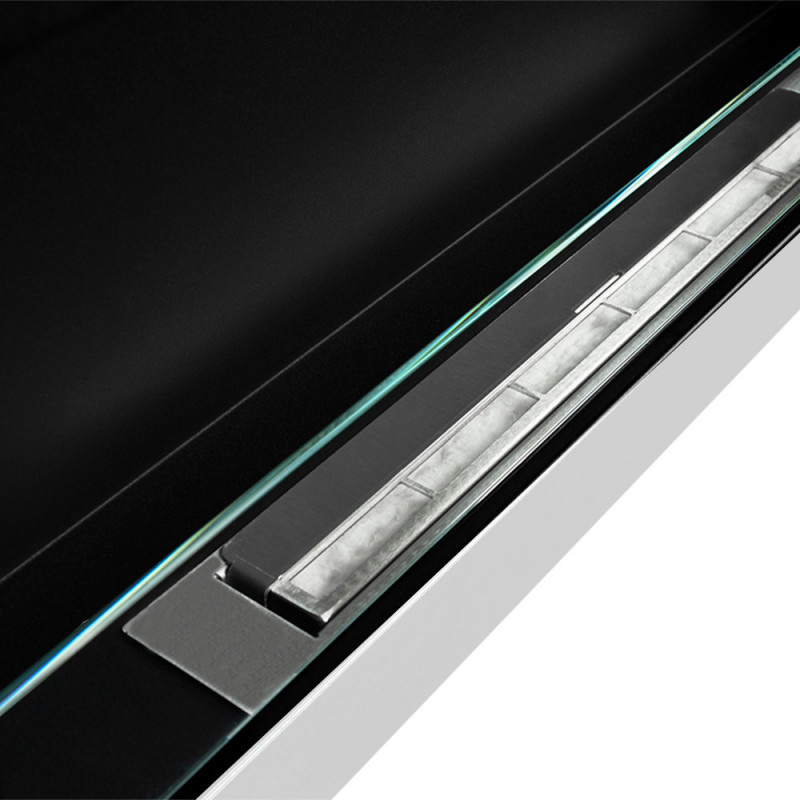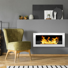 External dimensions: Width 88.5cm Depth 13.5cm Height 56cm Weight 18.1 kg Technical data: Power: 900/1800 W AC- 220-240/50hz Absorption in flame function (no heating): 30 watts Temperature: 18°-30° Daily and weekly programming Adjustable electronic timer from 1 ha 8 h 5 flame and brazier intensity adjustments 3D Wood Effect + Crystal Stone CURVED...