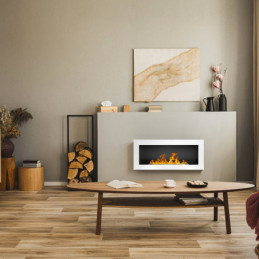 External dimensions: Width 88.5cm Depth 13.5cm Height 56cm Weight 18.1 kg Technical data: Power: 900/1800 W AC- 220-240/50hz Absorption in flame function (no heating): 30 watts Temperature: 18°-30° Daily and weekly programming Adjustable electronic timer from 1 ha 8 h 5 flame and brazier intensity adjustments 3D Wood Effect + Crystal Stone CURVED...