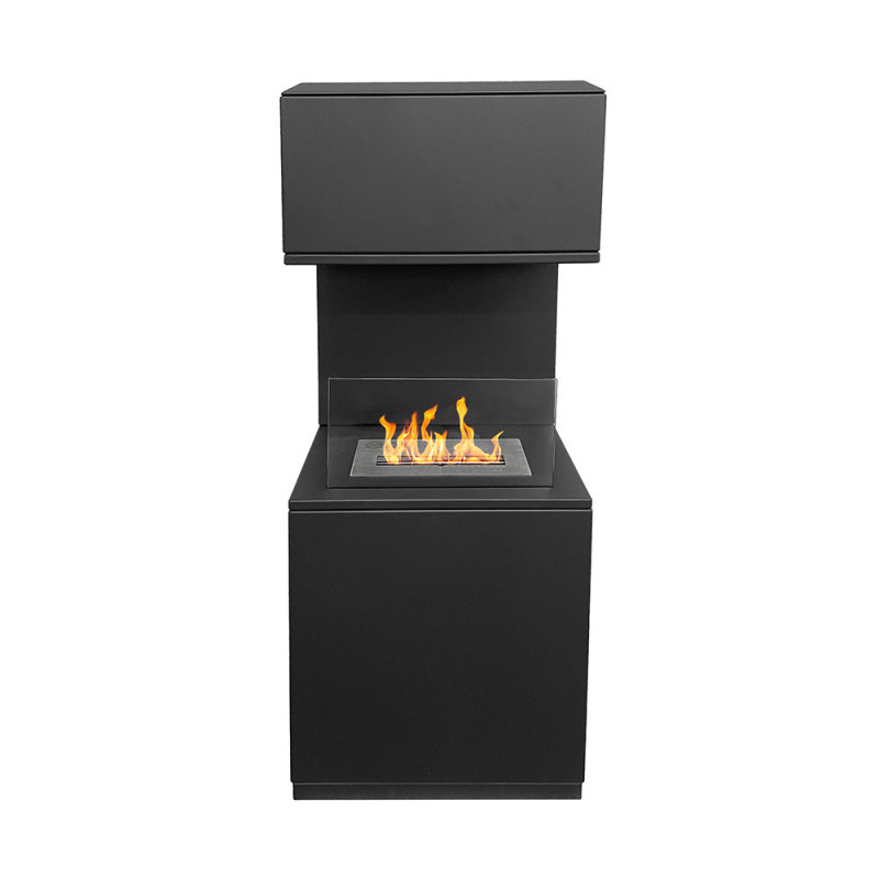 Camino a Bioetanolo Oslo Nero H100 Moderno da Interno/Esterno – con Vetro e Bruciatore Tuv