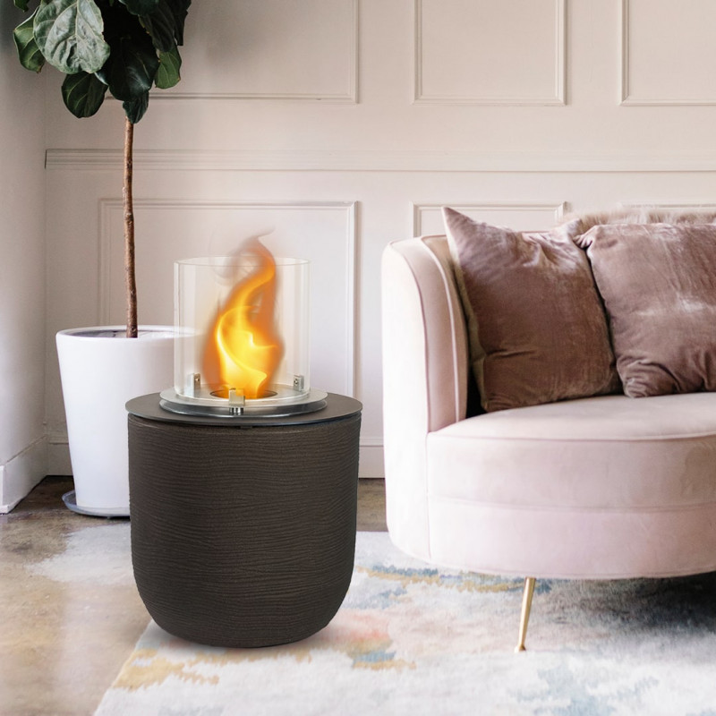 Camino a Bioetanolo Raffaello Terra Marrone diam.35×H55 da Giardino o Salotto – Naturale ed Elegante