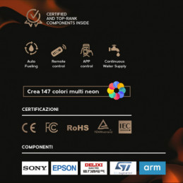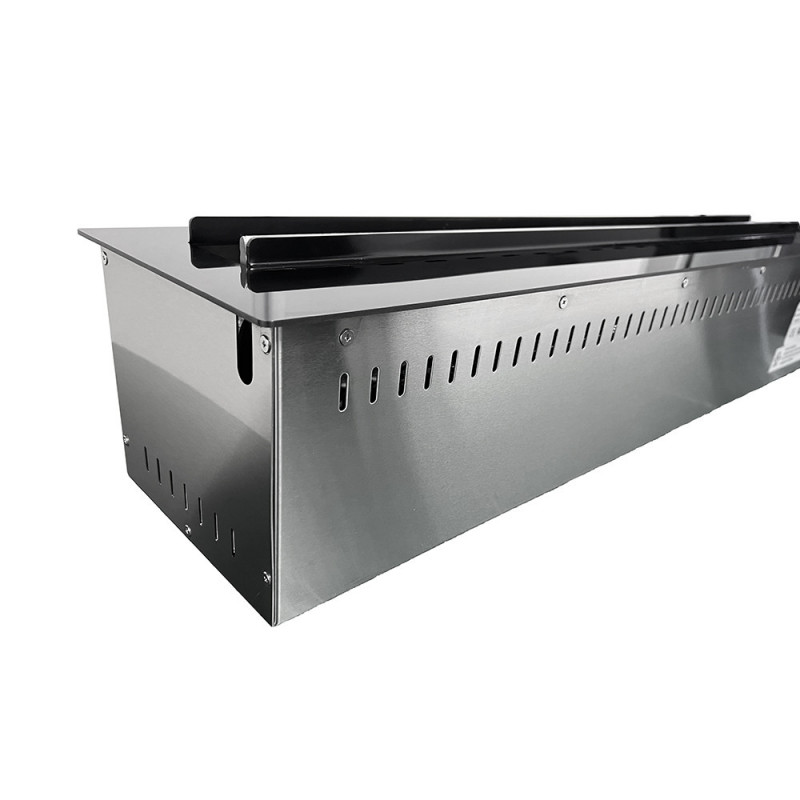 External dimensions: Width 122cm Depth 9.5cm Height 56cm Weight 19.8 kg Technical data: Power: 900/1800 W AC- 220-240/50hz Absorption in flame function (no heating): 30 watts Temperature: 18°-30° Daily and weekly programming Adjustable electronic timer from 1 to 8 h Digital thermostat 5 settings for flame and brazier intensity 9 modifiable flame colors 3D...