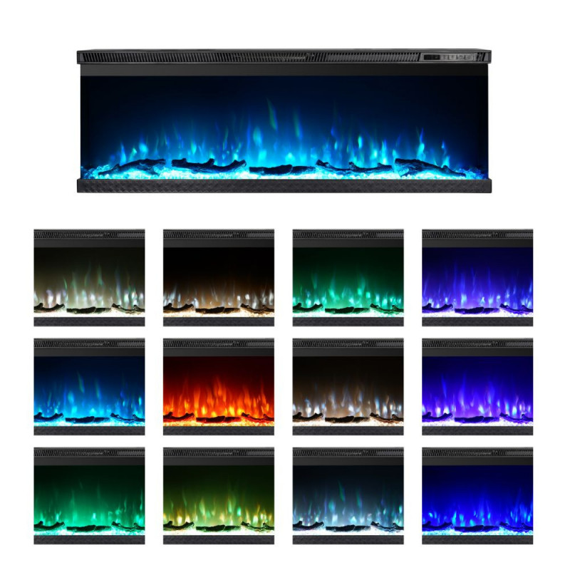 External dimensions: Width 122cm Depth 9.5cm Height 56cm Weight 19.8 kg Technical data: Power: 900/1800 W AC- 220-240/50hz Absorption in flame function (no heating): 30 watts Temperature: 18°-30° Daily and weekly programming Adjustable electronic timer from 1 to 8 h Digital thermostat 5 settings for flame and brazier intensity 9 modifiable flame colors 3D...