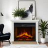 External dimensions: Width 88.5cm Depth 13.5cm Height 56cm Weight 18.1 kg Technical data: Power: 900/1800 W AC- 220-240/50hz Absorption in flame function (no heating): 30 watts Temperature: 18°-30° Daily and weekly programming Adjustable electronic timer from 1 ha 8 h 5 flame and brazier intensity adjustments 3D Wood Effect + Crystal Stone CURVED...
