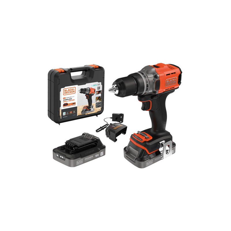 Trapano avvitatore 18V 2.0Ah – 2 batterie – valigetta – Black+Decker BCD382D2XK