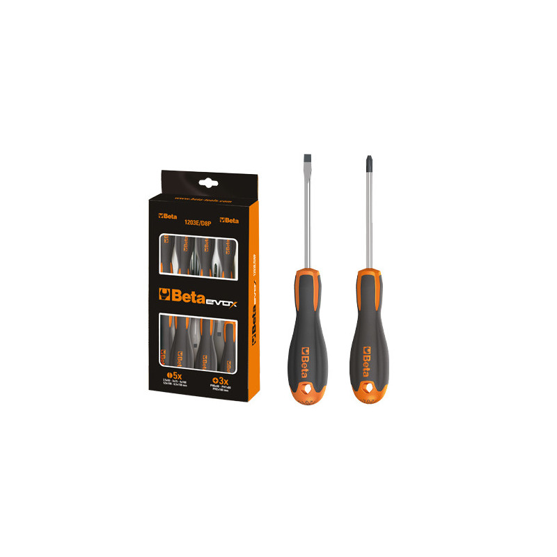 Set 8 giraviti Beta Evox 1203E/D8P – piatti e Phillips lame miste 2,5–6,5 × 50–150 mm – Beta