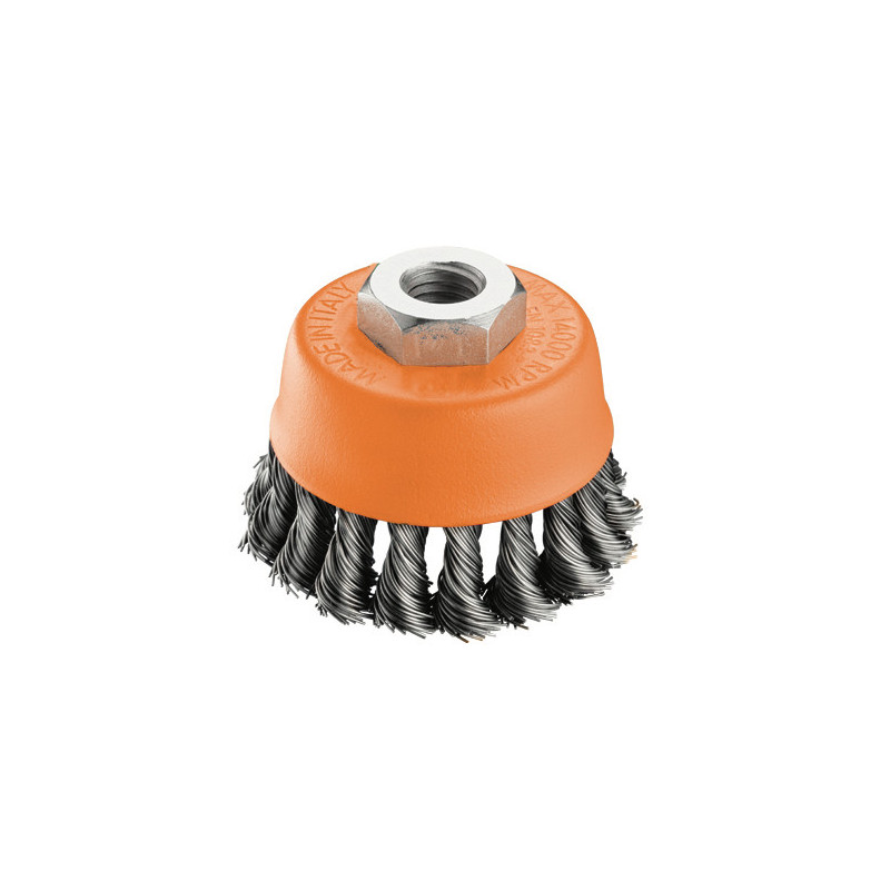 Spazzola a tazza 120 mm con fili ritorti – Brixo per finiture su metalli – Attacco M14