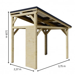 Carport tettoia auto con fotovoltaico 3,49x2,13 m – legno grezzo con 4 pannelli solari 2 kW – WT3521 Foresta