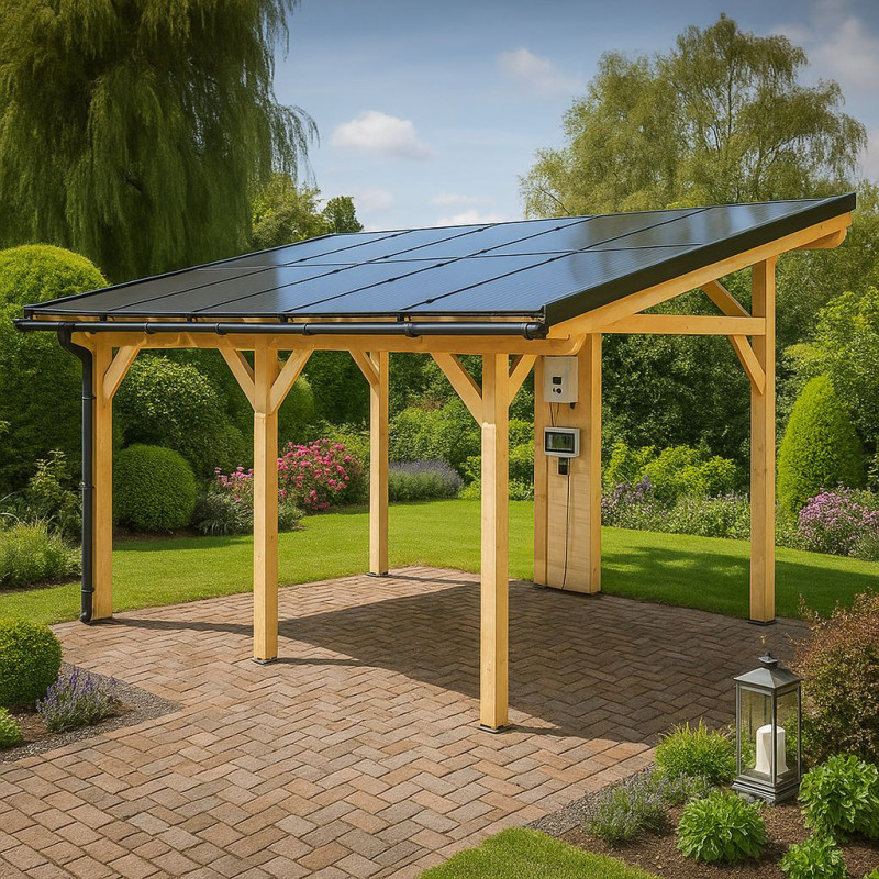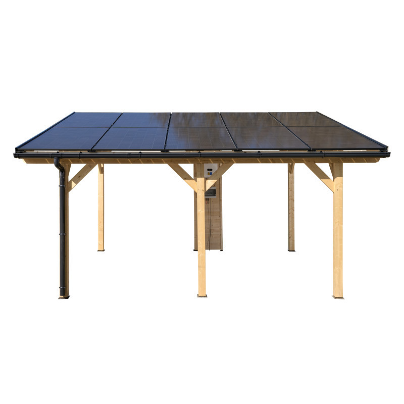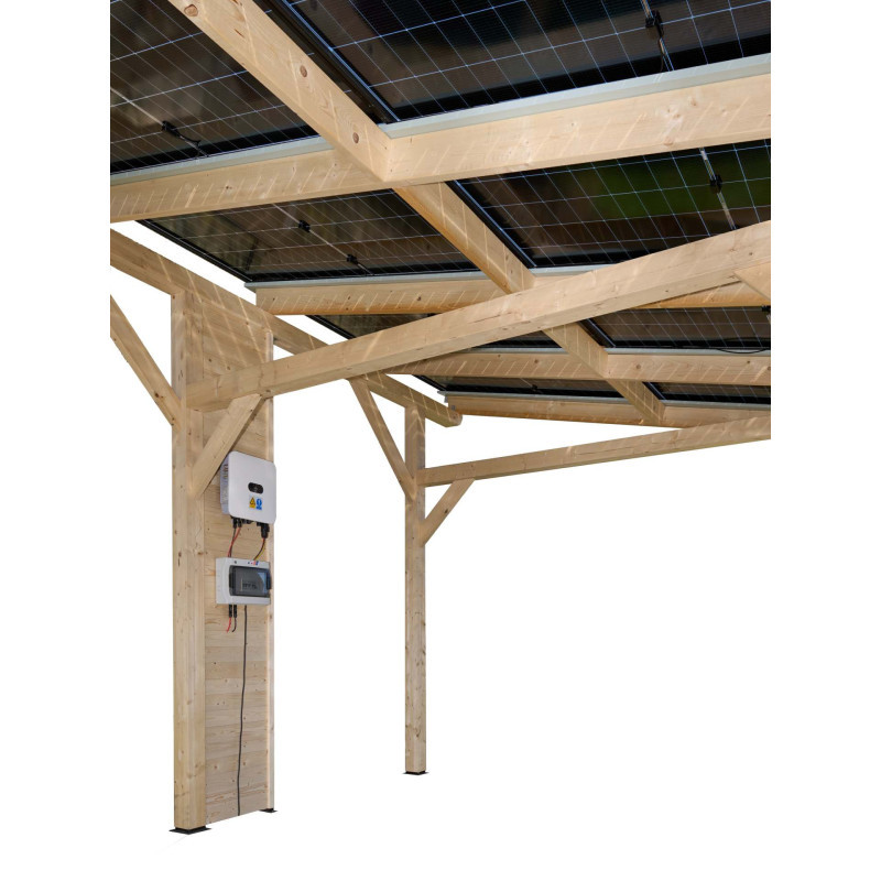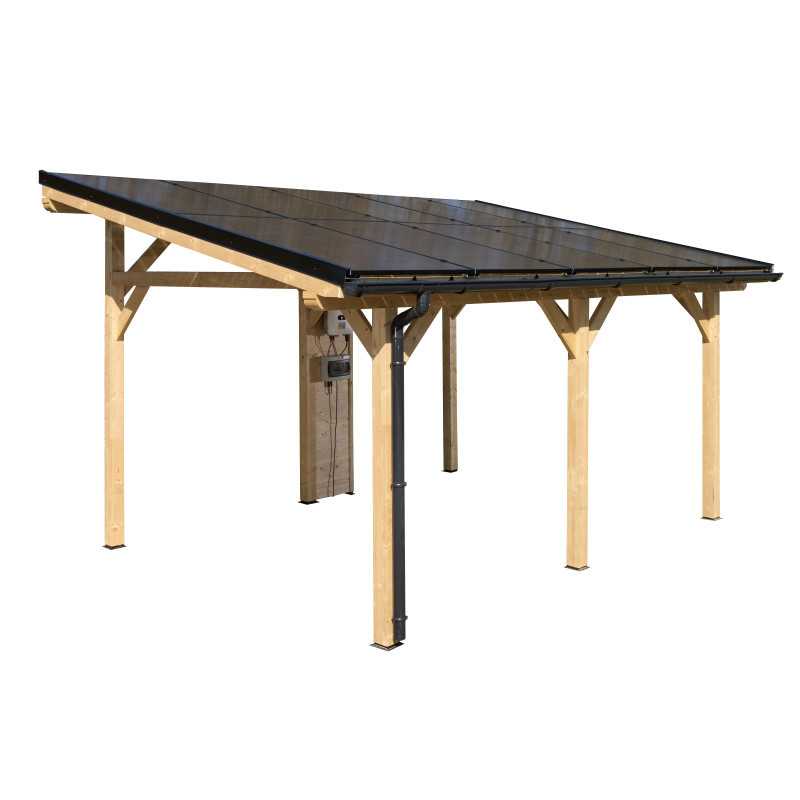 Carport tettoia auto con fotovoltaico 5kW in legno 349x460 cm – 10 pannelli – Tetto monofalda da esterno – WT3546 Foresta
