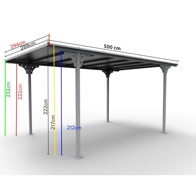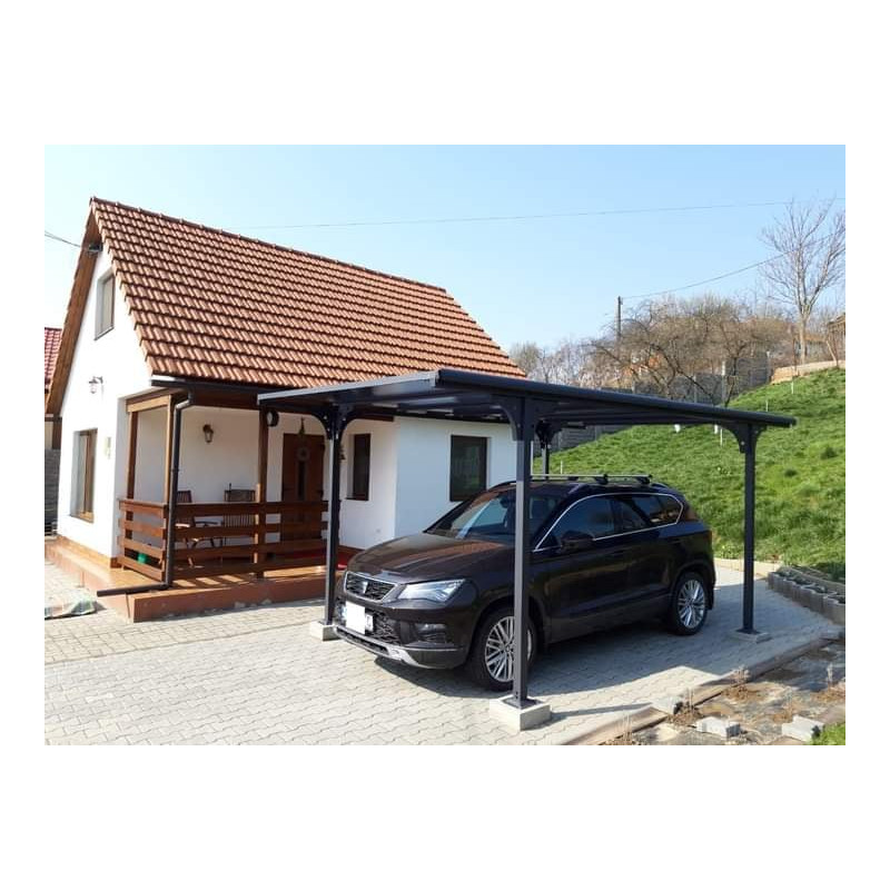 Tettoia auto da giardino in alluminio 294x500 cm – pergola, copertura auto carport con tetto piano policarbonato 6 mm – grigio antracite – CAR3050ALTPT Foresta