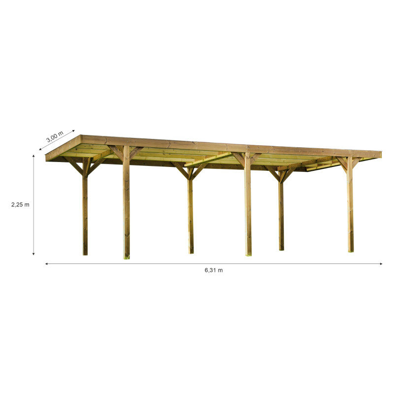 Tettoia auto in legno termotrattato 489x295 cm – carport con cpertura policarbonato 6 mm – Carport 1 posto auto – THP3063 Foresta