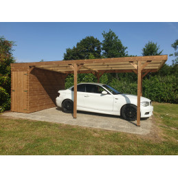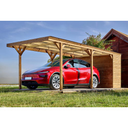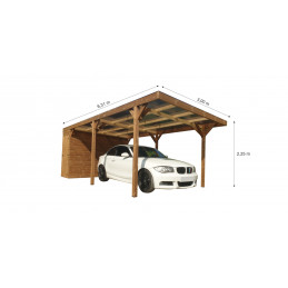 Tettoia auto in legno termotrattato 631x300 cm – Carport auto con capanno 3 m² e tetto in policarbonato – THP3063A Foresta