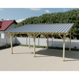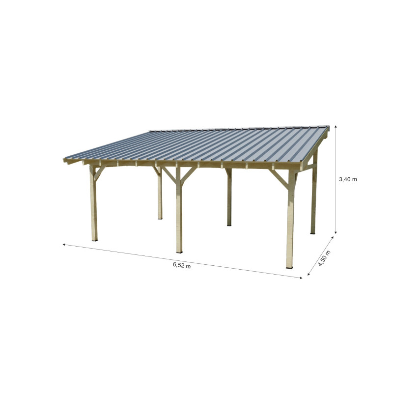 Tettoia doppio posto auto in legno 450x652 cm – Pendenza singola – carport con tetto acciaio zincato – Legno lamellare – AV4565BA Foresta