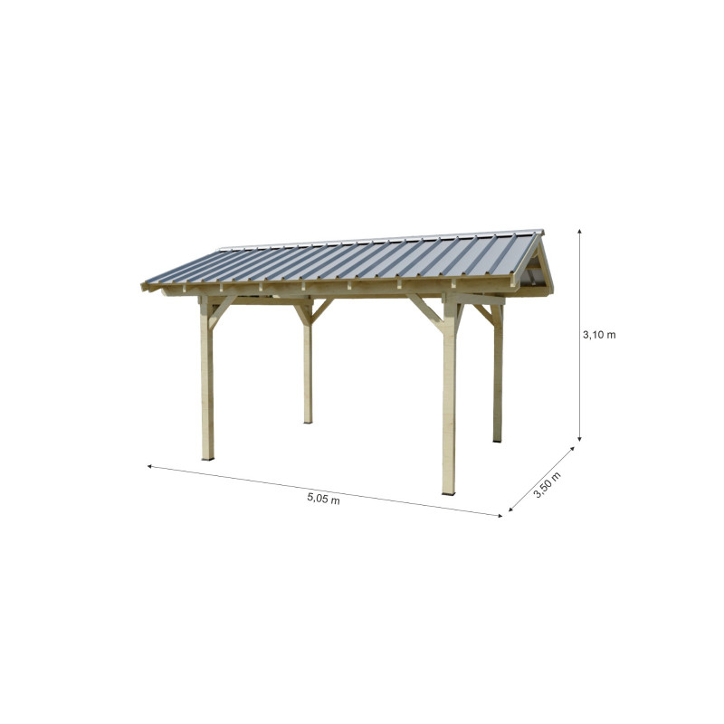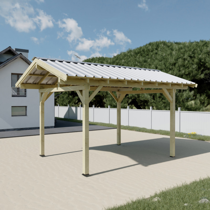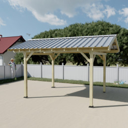 Tettoia posto auto in legno abete 300x362 cm – Altezza 310 cm – Carport con copertura auto in acciaio zincato – KA3550BA Foresta