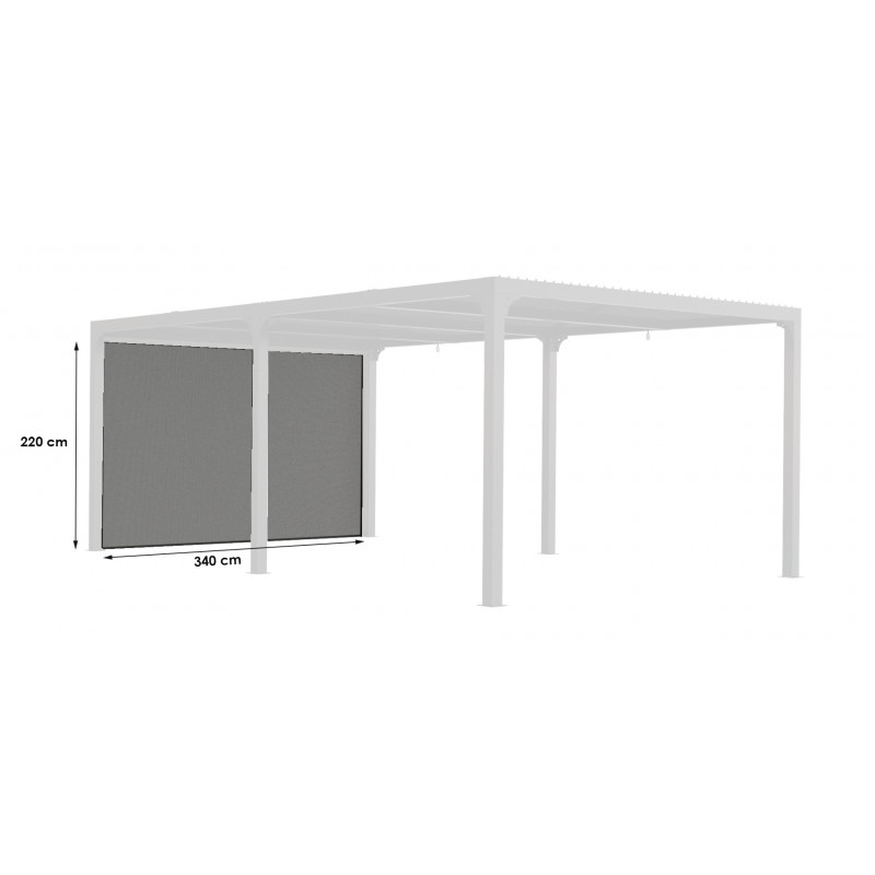 Caractéristiques techniques : - Matière : PVC tissé - Coloris : Gris - Dimensions : (LxPxH cm) 2,84 x H 2,20 m Équipé de : - 2 roulements de déroulement latéraux - 1 vérin de support - 2 rails de descente verticale - Poids : 14 kg - Garantie : 1 an - Manuel d'installation fourni à l'intérieur du colis