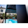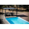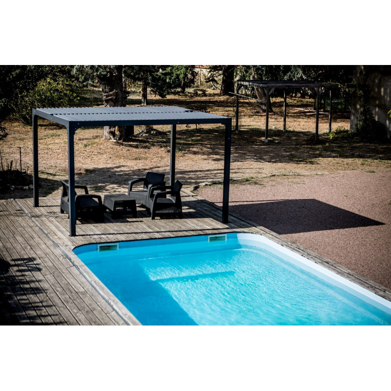 Caractéristiques techniques : - Structure : aluminium épaisseur 1,2 mm, coloris gris anthracite - Habillage : panneaux aluminium épaisseur 90 mm, épaisseur 1 mm, coloris gris anthracite, orientables jusqu'à 90° - Livré avec : 4 pieds dimension 10 x 10 cm, épaisseur 1,2 mm, complet avec plaques de fixation au sol de 16 x 16 cm, épaisseur 3 mm ; 2...