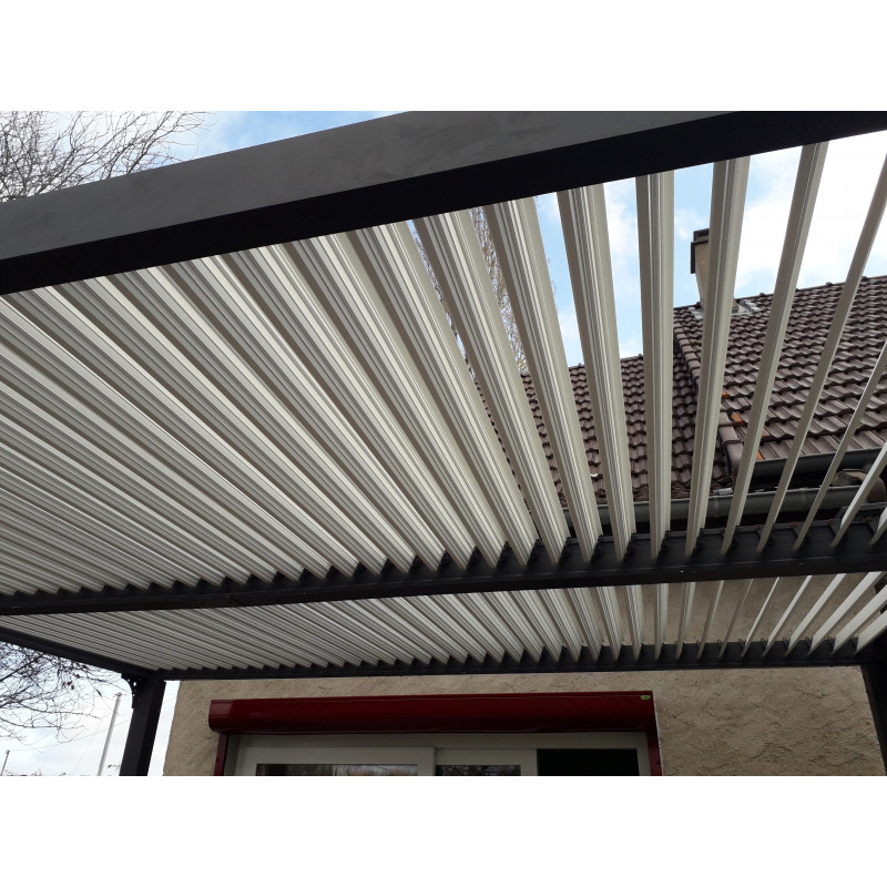 Caractéristiques techniques : - Structure : aluminium épaisseur 1,2 mm - Couleur : gris anthracite - Habillage : formé sur 2 faces de panneaux aluminium reliés entre eux, orientable semi-cintré 90 mm, orientable jusqu'à 90° environ et épaisseur 1 mm, coloris gris anthracite, orientable , peut être ouvert individuellement. Ouverture et fermeture des lattes...