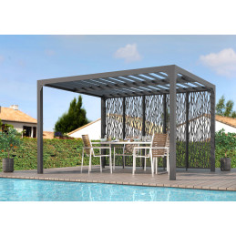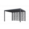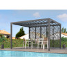Caractéristiques techniques : - Structure : aluminium épaisseur 1,2 mm - Couleur : gris anthracite - Capot : panneaux aluminium épaisseur 90 mm, épaisseur 1 mm, coloris gris anthracite, orientables jusqu'à 90° - Livré avec : 4 mâts dim. 10 x 10 cm , 1,2 mm d'épaisseur, complet avec plaques de fixation au sol de 16 x 16 cm, 3 mm d'épaisseur ; 2 gouttières...