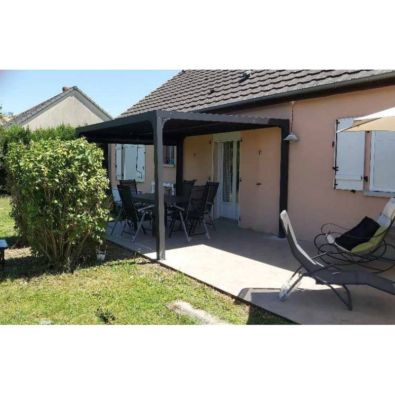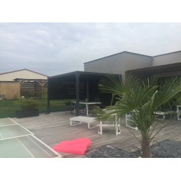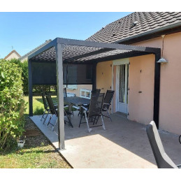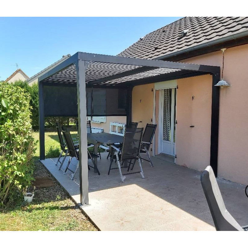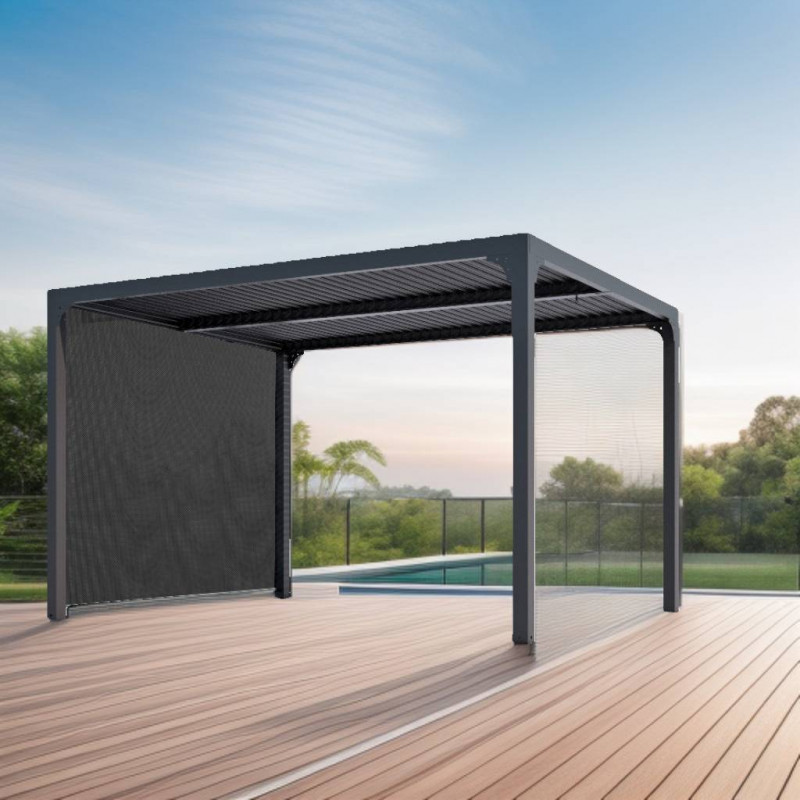 Pergola bioclimatica in alluminio antracite 360x300 cm – Lamelle orientabili 90° – Con tenda laterale PVC 3 m – 10,80 m² – PER3630RBI Foresta