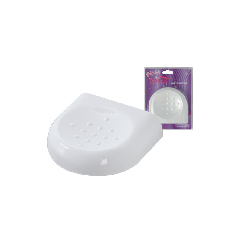 Portasapone Gioia in ABS bianco – 15x5x20 cm – Fissaggio adesivo o viti – Bagno ordinato