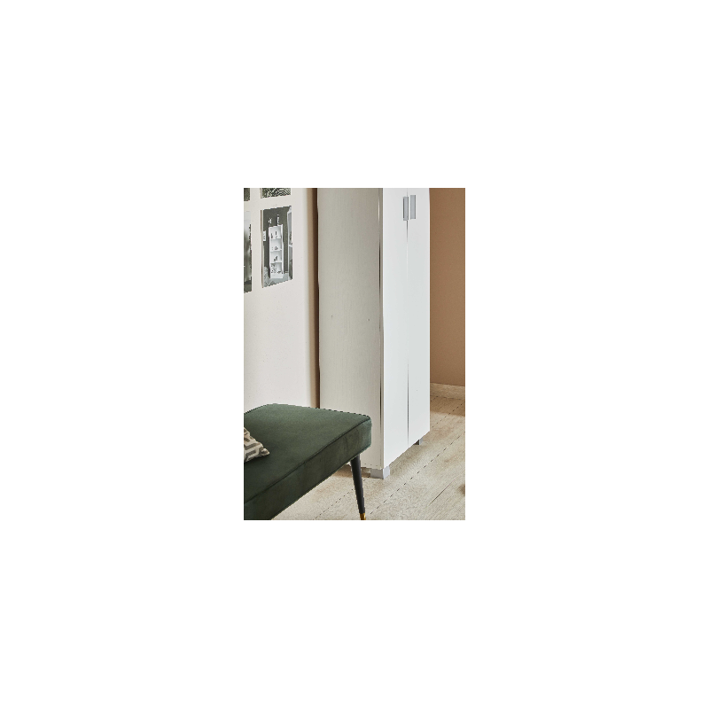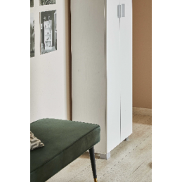Structure sp. 18mm et portes ép. 16 mm, côtés et dessus visibles, bord ABS sans angle vif Contient 8 étagères réglables Poignées et pieds peints en chrome satiné (en finition structure avec Fonte ou Titane) Armoire en kit assemblé < br / > Structure en Orme Clair et Façade en Blanc Flammé Mesures techniques : - Hauteur : 190cm - Largeur : 83cm -...
