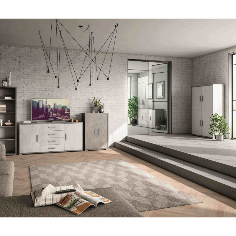 Mobile 2 Ante 4 Cassetti 174L x 41P x h84 – Finitura Legno Noce e Bianco Opaco – Sarmog