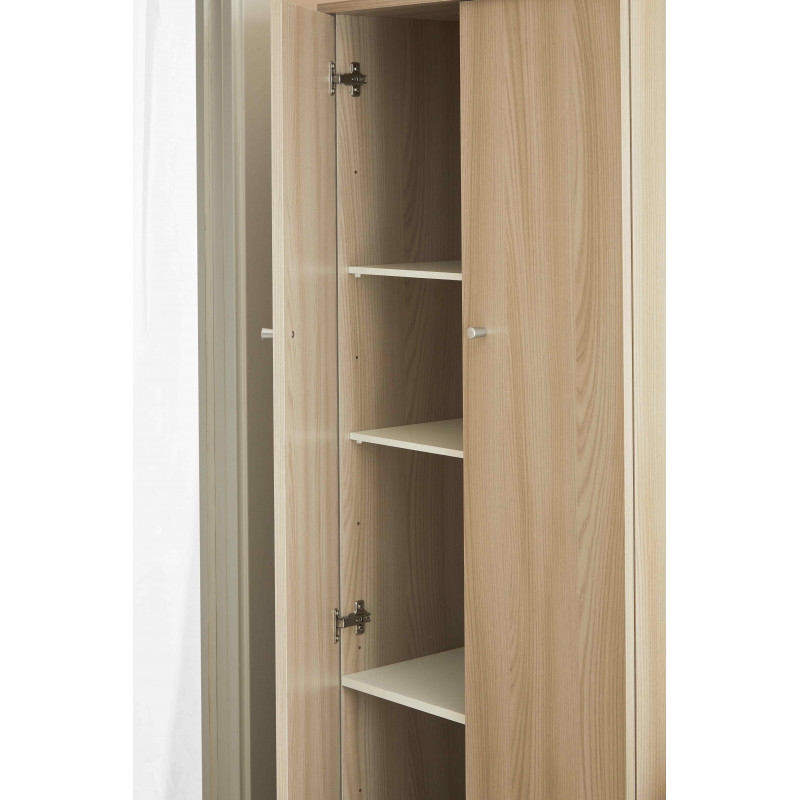 Structure sp. 18mm et portes ép. 16 mm, côtés et dessus visibles, bord ABS sans angle vif Contient 8 étagères réglables Poignées et pieds peints en chrome satiné (en finition structure avec Fonte ou Titane) Armoire en kit assemblé < br / > Structure en Orme Clair et Façade en Blanc Flammé Mesures techniques : - Hauteur : 190cm - Largeur : 83cm -...