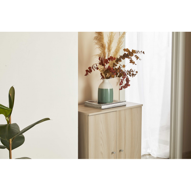 Structure sp. 18mm et portes ép. 16 mm, côtés et dessus visibles, bord ABS sans angle vif Contient 8 étagères réglables Poignées et pieds peints en chrome satiné (en finition structure avec Fonte ou Titane) Armoire en kit assemblé < br / > Structure en Orme Clair et Façade en Blanc Flammé Mesures techniques : - Hauteur : 190cm - Largeur : 83cm -...