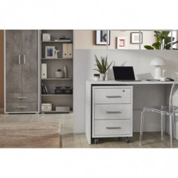 Structure sp. 18mm et portes ép. 16 mm, côtés et dessus visibles, bord ABS sans angle vif Contient 8 étagères réglables Poignées et pieds peints en chrome satiné (en finition structure avec Fonte ou Titane) Armoire en kit assemblé < br / > Structure en Orme Clair et Façade en Blanc Flammé Mesures techniques : - Hauteur : 190cm - Largeur : 83cm -...