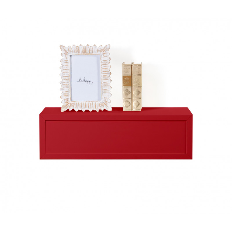 Mensola da Muro con Cassetto, Comodino Sospeso, Mensola da Parete, Rosso, 45x13,4 p20 cm - Legolo