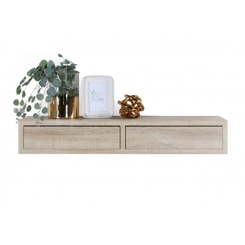 Mensola da Muro con Cassetto, Comodino Sospeso, Mensola da Parete, Rovere Sagerau, 88,2x13,4 p23,7 cm - Domino Maxi