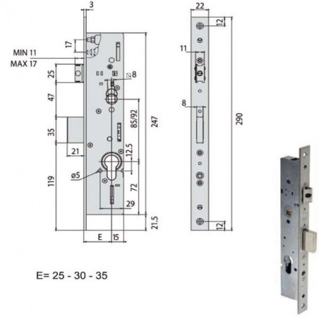Serratura Infilare Montanti All 49225-25-0 Cisa