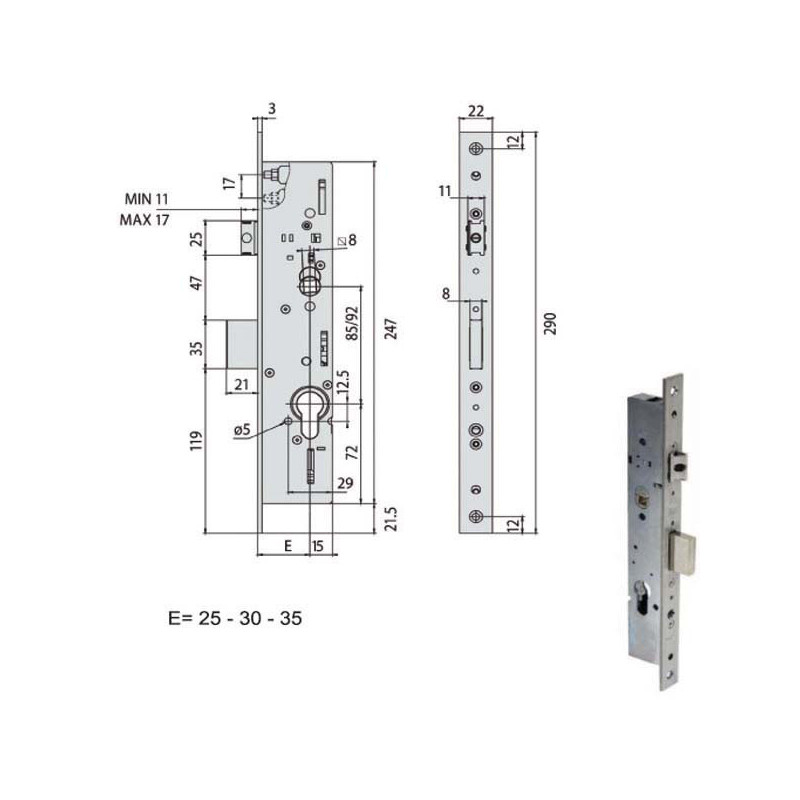 Serratura Infilare Montanti All 49225-30-0 Cisa