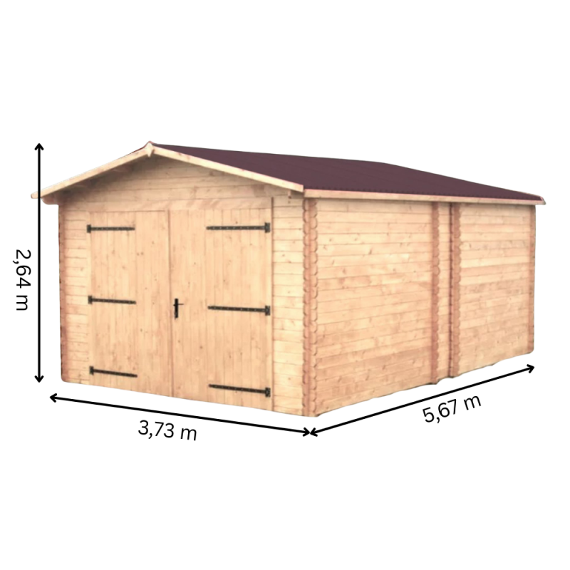 Garage in legno Douglas 350x540 cm – Pareti 28 mm – Tetto Onduline – Porta doppia – Denis – DE3554N Foresta