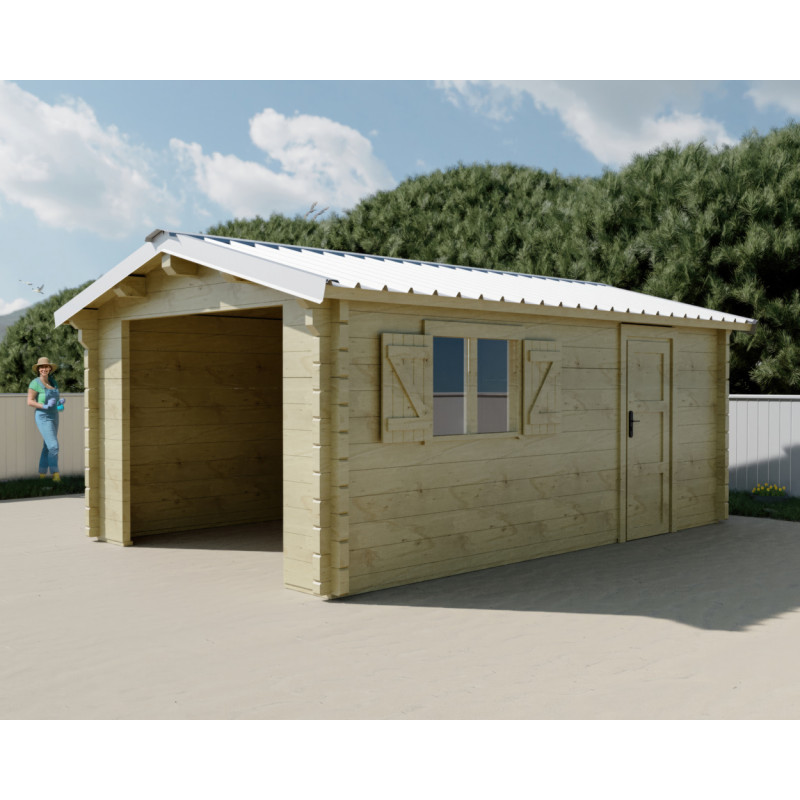 Garage in legno lamellare 360x548 cm – Pareti 80 mm – Tetto 26 m² – Porta vetro – Saska – SA3655G Foresta