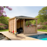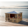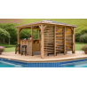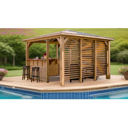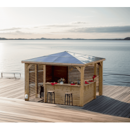 Chiosco bar pool house da giardino in legno termotrattato 379x379 cm – gazebo con tetto ACP – 2 pareti con ventelle + 2 pareti bar – THB3535.CCVV Foresta