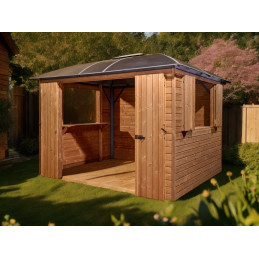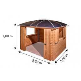 Chiosco bar pool house gazebo da giardino 360x300 cm – Abete termotrattato e tetto policarbonato 6 mm – Struttura alluminio – GL3630TH Foresta