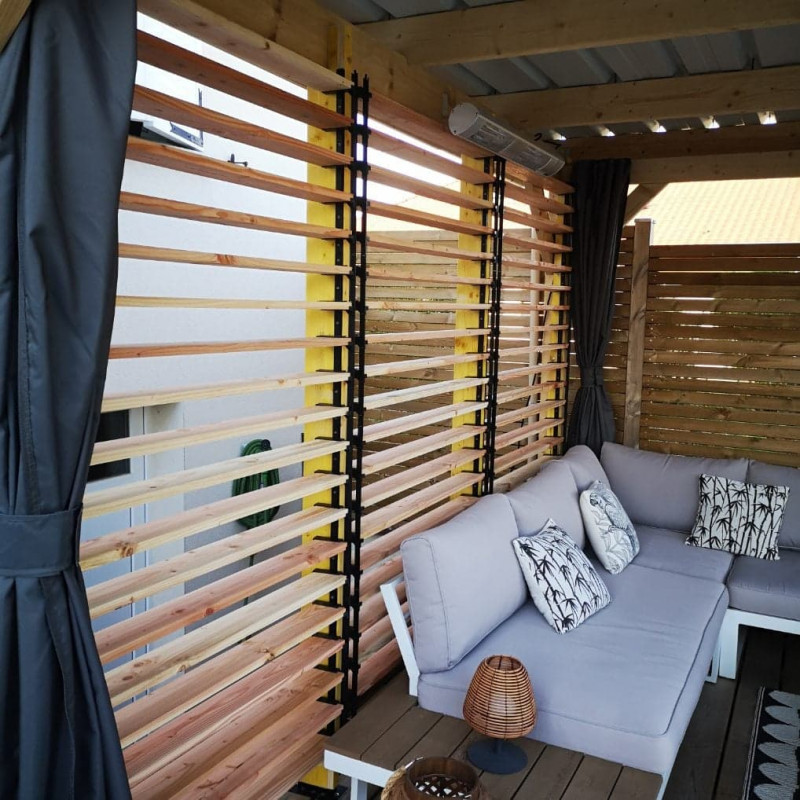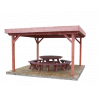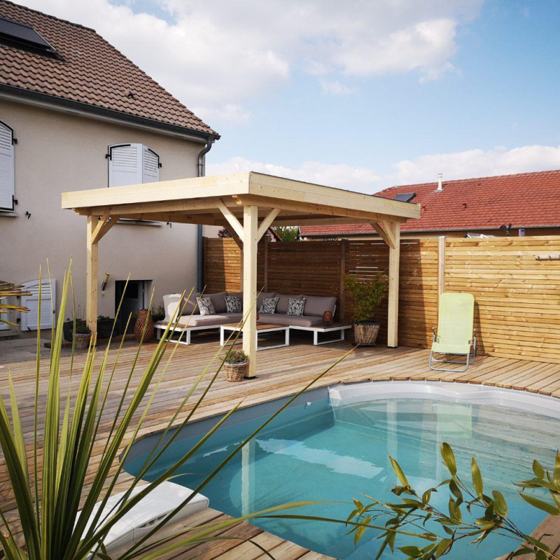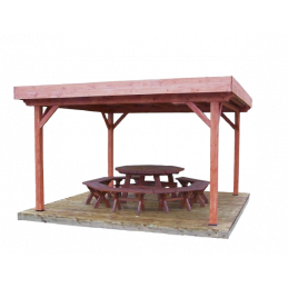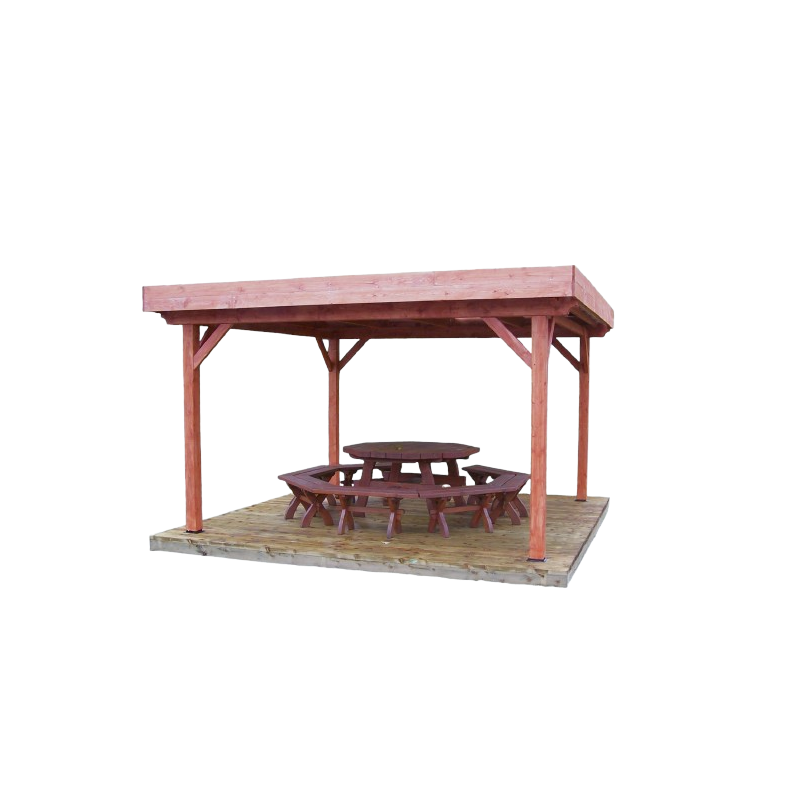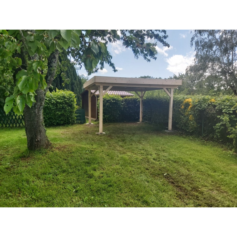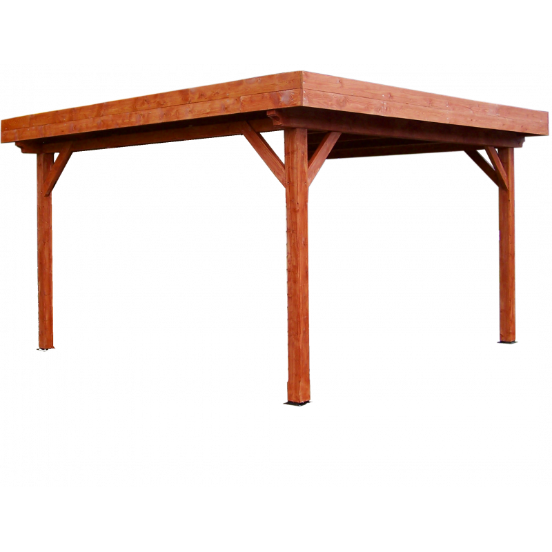 Gazebo da giardino in legno lamellare 372x372 cm – carport con tetto piano in acciaio zincato – pali 120x120 mm – OM3535.0 Foresta