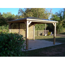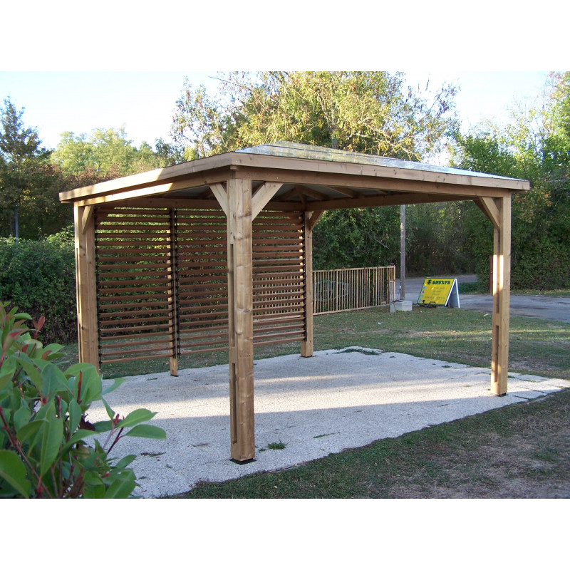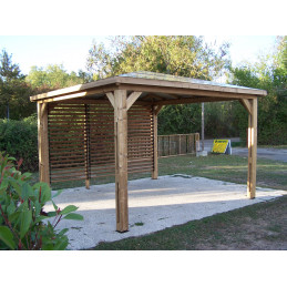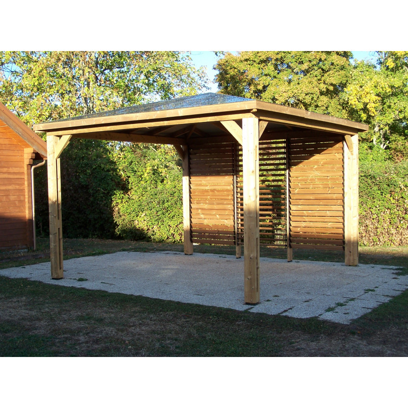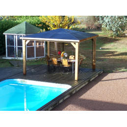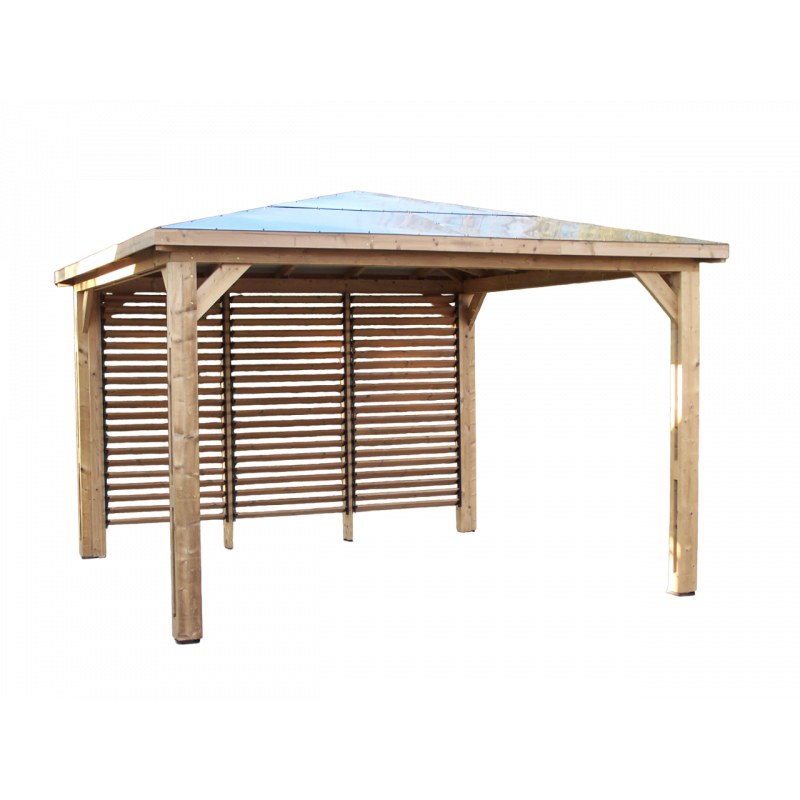 Gazebo pool house da giardino in legno termotrattato 379x379 cm – tetto ACP – parete con ventelle mobili – THB3535.V Foresta