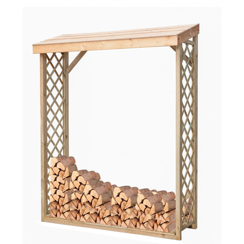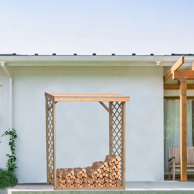 Legnaia da esterno in legno 162x60x205 cm – Abete impregnato – Con griglie decorative