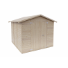 Dimensions techniques : -Epaisseur mur 19 mm -Largeur externe (A) 198 cm -Profondeur externe (B) 198 cm -Largeur interne (C) 176 cm -Profondeur interne (D) 176 cm -Surface interne 3,10 m2 -Hauteur minimum ( h1) 183 cm - Hauteur maximale (h2) 215 cm - Longueur avant-toit (G) 208 cm - Développement en pente (S) 123 cm - Surface de toiture 5,12 m2