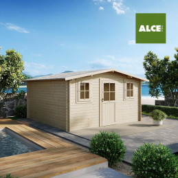 Dimensions techniques : -Epaisseur mur 19 mm -Largeur externe (A) 198 cm -Profondeur externe (B) 198 cm -Largeur interne (C) 176 cm -Profondeur interne (D) 176 cm -Surface interne 3,10 m2 -Hauteur minimum ( h1) 183 cm - Hauteur maximale (h2) 215 cm - Longueur avant-toit (G) 208 cm - Développement en pente (S) 123 cm - Surface de toiture 5,12 m2