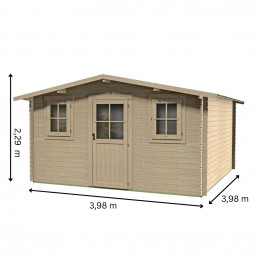 Dimensions techniques : - Epaisseur mur 16 mm - Largeur externe (A) 178 cm - Profondeur externe (B) 273 cm - Largeur interne (C) 163 cm - Profondeur interne (D) 258 cm - Surface interne 4,20 m2 - Hauteur minimum ( h1) 192 cm - Hauteur maximale (h2) 226 cm - Longueur avant-toit (G) 283 cm - Développement en pente (S) 106 cm - Surface de toiture 6,00 m²