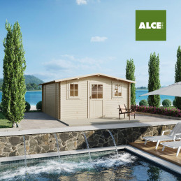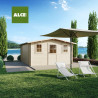 Dimensions techniques : -Epaisseur mur 19 mm -Largeur externe (A) 198 cm -Profondeur externe (B) 198 cm -Largeur interne (C) 176 cm -Profondeur interne (D) 176 cm -Surface interne 3,10 m2 -Hauteur minimum ( h1) 183 cm - Hauteur maximale (h2) 215 cm - Longueur avant-toit (G) 208 cm - Développement en pente (S) 123 cm - Surface de toiture 5,12 m2