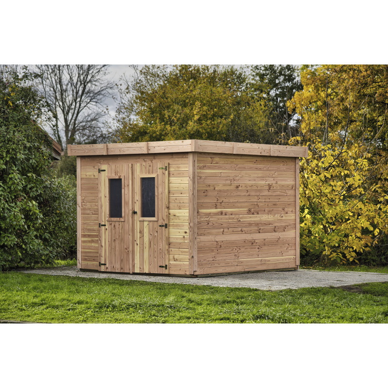 Casetta da giardino in legno 280x280 cm – Spessore pareti 28 mm – Tetto piano in acciaio – DIN3030.02 Foresta