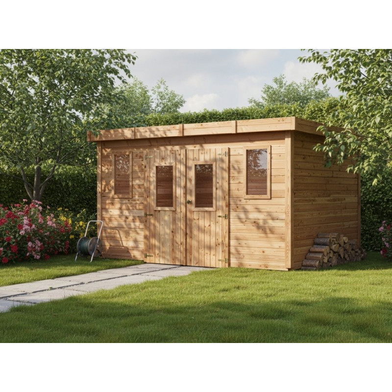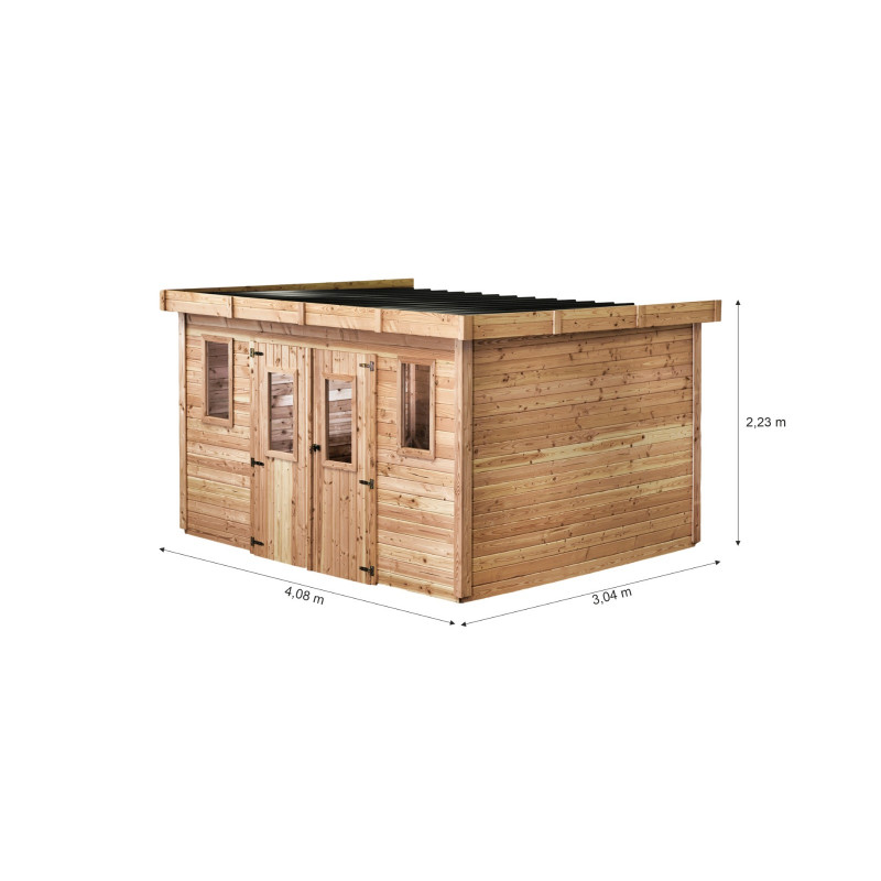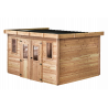 Casetta da giardino in legno 280x380 cm – Spessore pareti 28 mm – Tetto piano in acciaio – DIN4030.02 Foresta